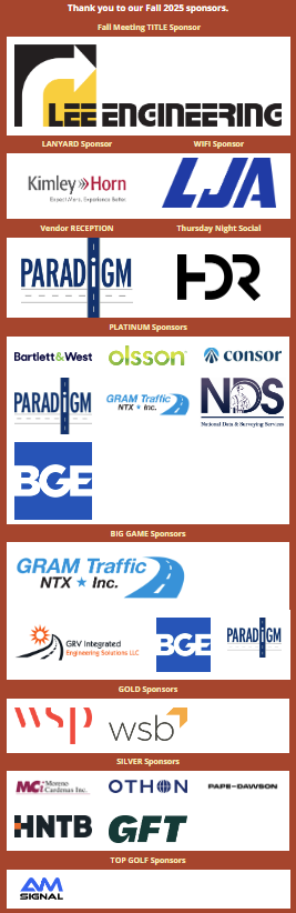 TexITE and the Local Arrangements Committee greatly appreciate our Sponsors’ support and generosity. Your assistance helps keep attendance costs low for members and students by offsetting expenses for the meeting, workshops, and special events.